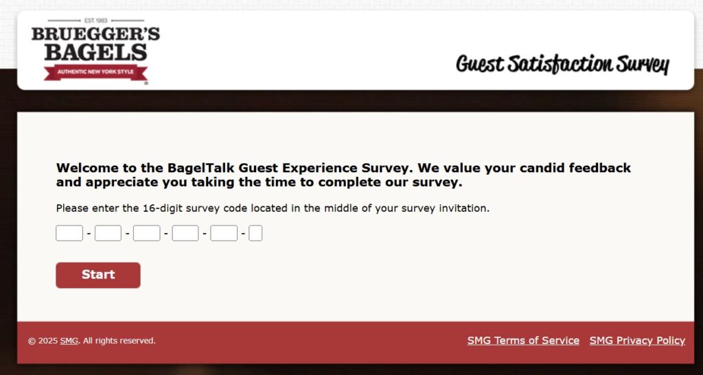 To take the TellBrueggers survey, you need a valid purchase receipt from Bruegger’s Bagels. The receipt contains a 16-digit survey code or access information. You can use this code to enter the valid brueggerssurvey.com website and answer the questions.