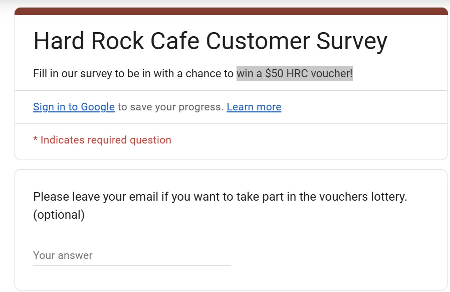 Hard Rock Cafe Customer Survey win a $50 HRC voucher!