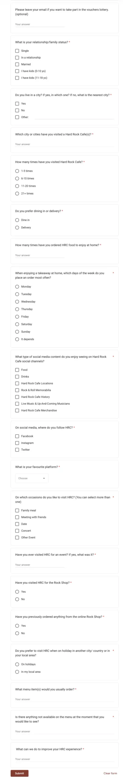 This survey helps Hard Rock Cafe make their service, food, and atmosphere better by listening to what customers like you have to say.