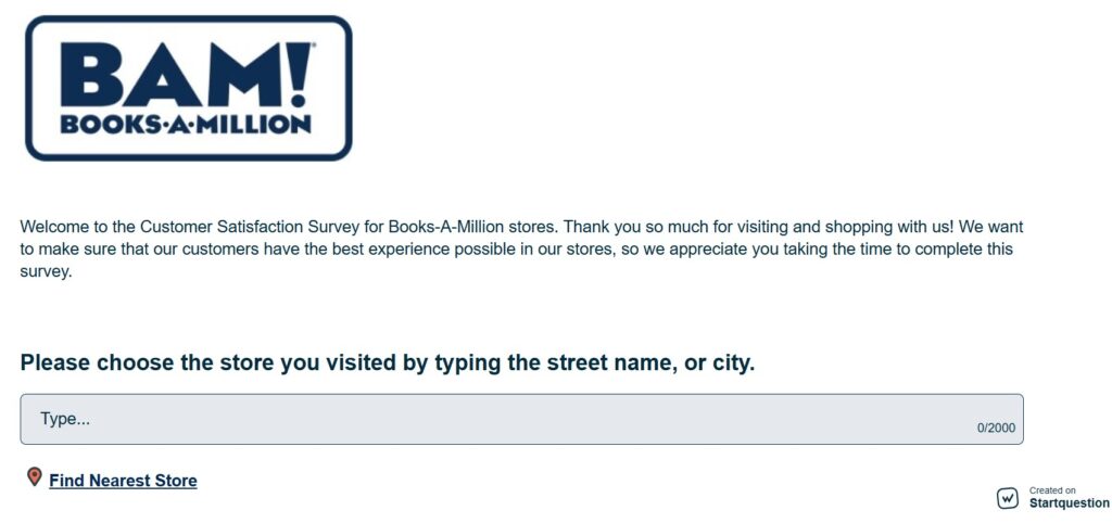 - First of all, visit the BAM! survey official portal at https://bam-store.startquestion.com/.